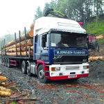 “Damien Galloway captured this stunning shot of a D Steven and Son of Wick Scania S-series on the A98 leaving MacDuff, heading west towards Banff, with Doune Church in the background”.