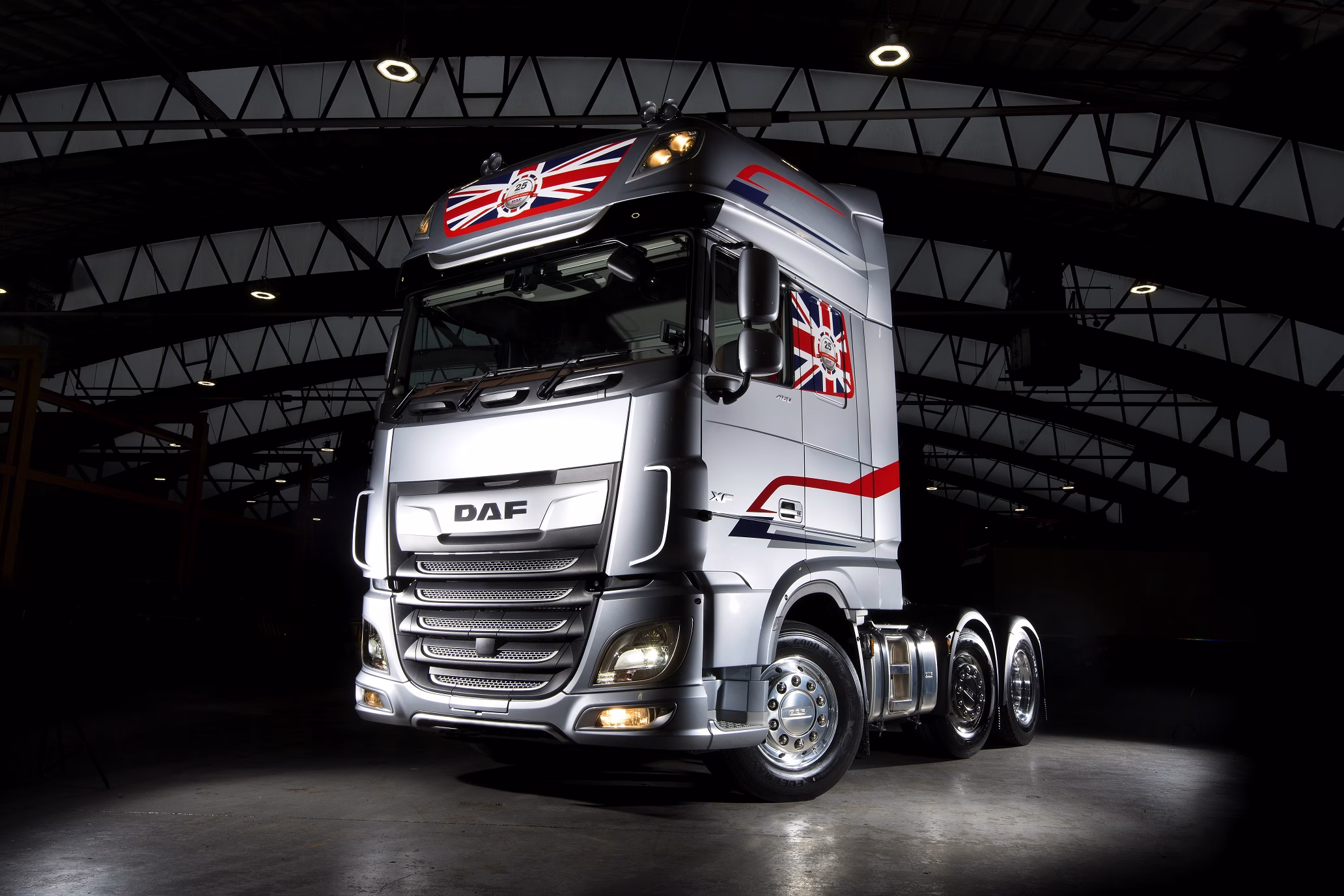 Special ‘liquid metal silver’ paint and ’25 Years UK Market Leader’ livery deliver a striking on-road presence, at the same time acknowledging the British-built DAF brand’s outstanding milestone of a quarter of a century as market leader.